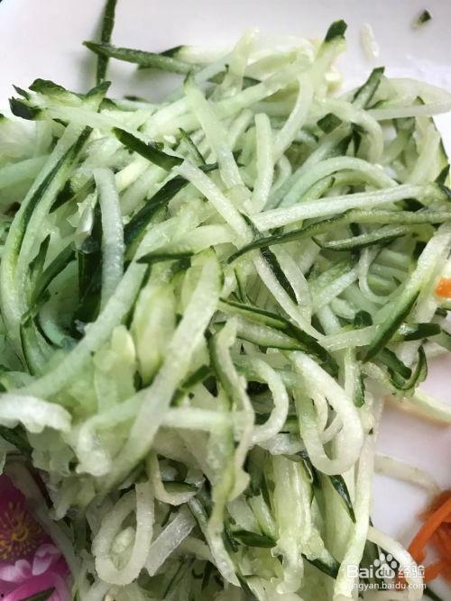 1. 选材:选用新鲜黄瓜,洗净后切成细丝。